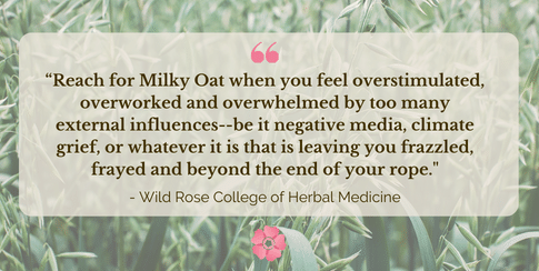 “Milky oats is an exceptionally important and useful remedy in nervous debility and exhaustion and is the best all-purpose restorative in the Western Materia Medica. Milky oats is a nervine trophorestorative, meaning they have a unique affinity for the nervous system. Whether you’re battling stress, anxiety, or nervous exhaustion, milky oats can help rejuvenate and nurture your frazzled and depleted nerves.”